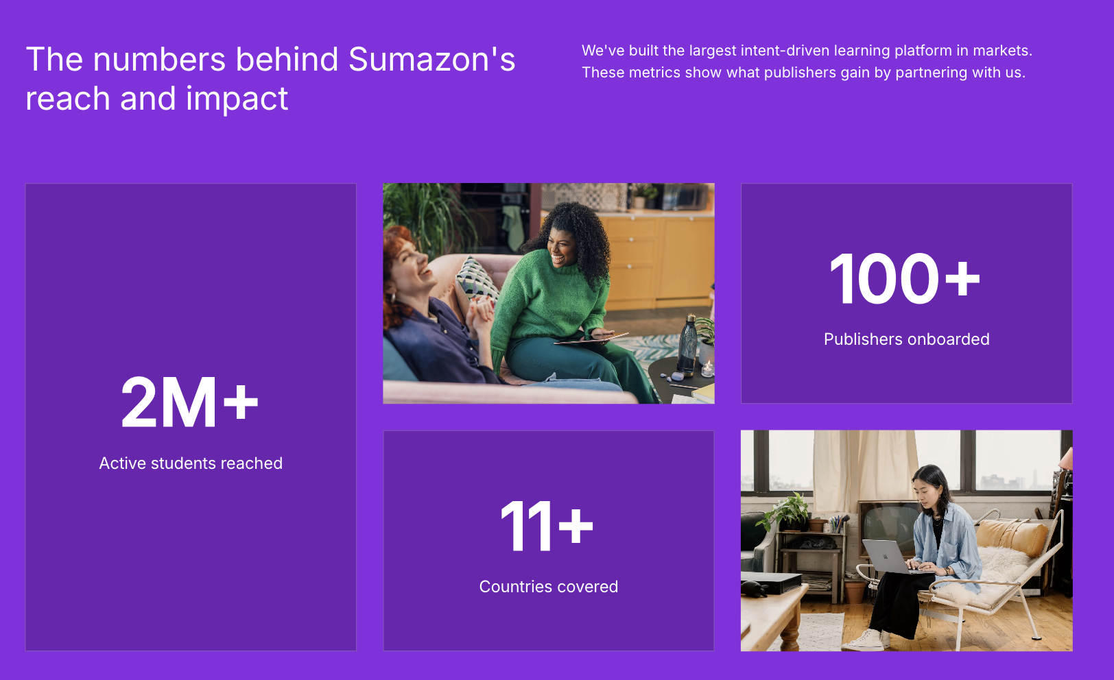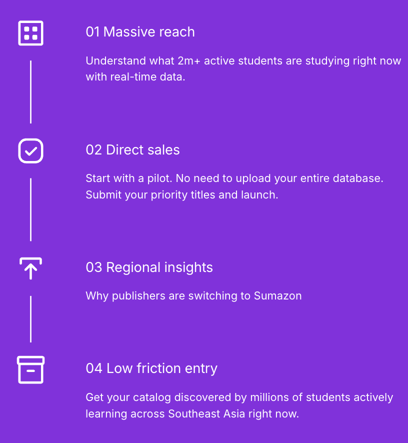 Sumazon connects your titles directly to 2 million students based on their real-time learning needs.