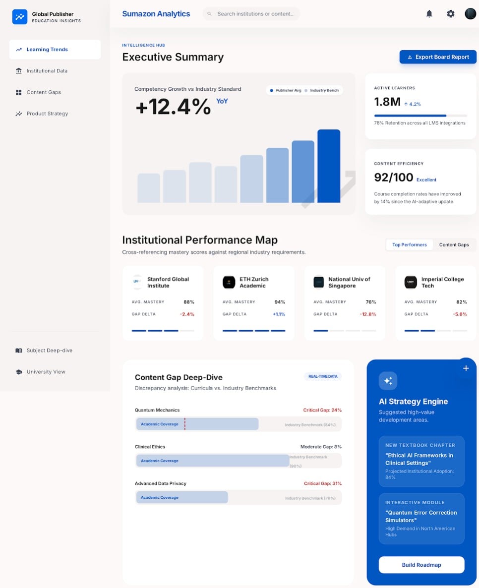 Your titles appear when students search for subjects matching your catalog. We use real-time learning data to place books in front of students actively seeking that exact content. No guessing. No wasted impressions.