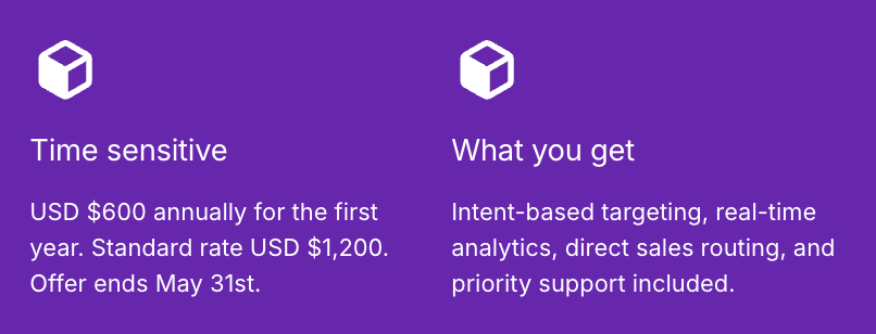 Early adopters lock in USD $600 for the first year if they register before the end of May. Standard rate is USD $1,200 annually. Billing begins once your pilot campaign launches.